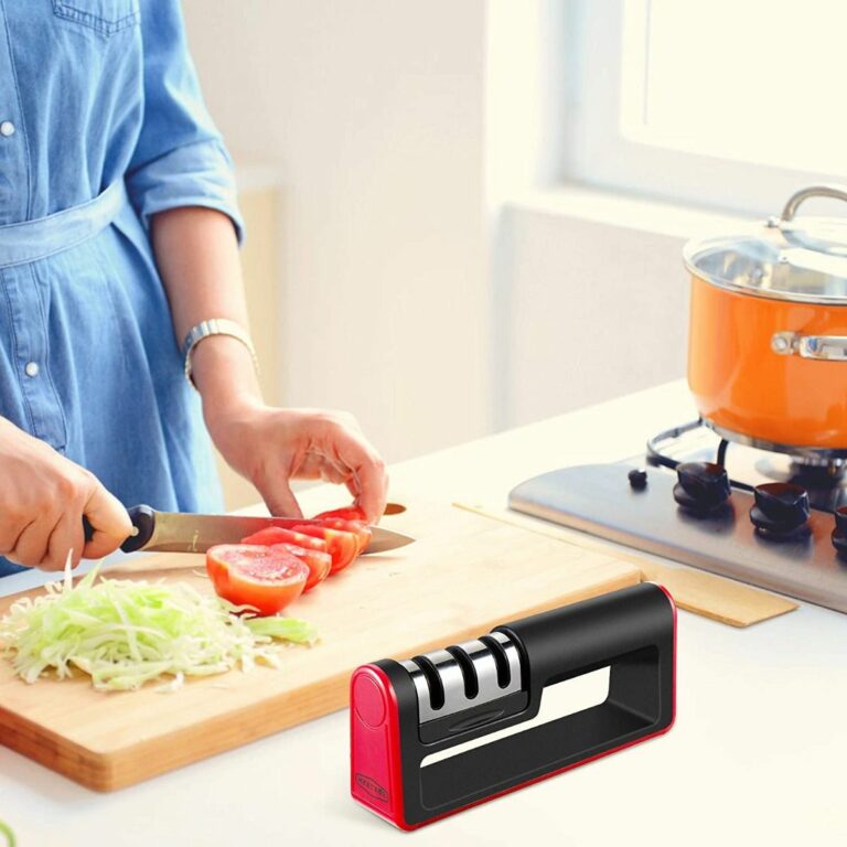 Stumpfe Messer im Haushalt? Das war einmal. Mit Hilfe unseres Meateor Messerschärfers gehört das der Vergangenheit an! Der, aus festen ABS-Kunststoff gefertigten, Messerschärfer bietet einem die Möglichkeit über drei verschiedene Stufen seine Messer hervorragend zu schärfen.
